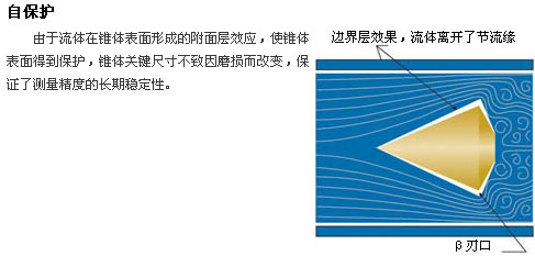 長期穩(wěn)定性好:錐體的外形設(shè)計(jì)保證流體在流經(jīng)錐體時(shí)是一種漸變的過程,無突變,β值可保持長期不變,儀表可長期使用不需標(biāo)定。