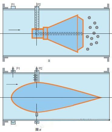 在同一密閉管道內(nèi),當(dāng)壓力降低時,速度會增加,當(dāng)介質(zhì)接近錐體時,其壓力為P1,在介質(zhì)通過錐體的節(jié)流區(qū)時,速度會增加,壓力會降低為P2,如圖一所示,P1和P2都通過V型錐形流量計的取壓口引到差壓變送器上,流速發(fā)生變化時,差壓值會隨之增大或減小。也就是說對于穩(wěn)定流體,流量的大小與差壓平方根成正比。當(dāng)流速相同時,錐體節(jié)流面積越大,則產(chǎn)生的差壓值也越大。V型錐流量計屬精度、高穩(wěn)定性的新型差壓式流量儀表。