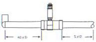 渦輪流量計傳感器應(yīng)安裝在便于維修,管道無振動、無強(qiáng)磁干擾與熱輻射影響的場所。安裝在室外時,應(yīng)有避直射陽光和放雨淋的措施。 (2)安裝要求及注意事項(xiàng) 渦輪流量計水平安裝的傳感器要求管道不應(yīng)有目測可覺察的傾斜(5°以內(nèi))垂直安裝的傳感器管道垂直偏差應(yīng)小于5°,流體方向應(yīng)有下向上。 不能停流的場所,應(yīng)加裝旁通和截止閥。 若流體含有雜質(zhì),則應(yīng)在上游側(cè)裝過濾器;若含有氣體,則應(yīng)在上游側(cè)裝消氣器。過濾器和消氣器的排污口和消氣口要通向安全的場所。 流量調(diào)節(jié)閥應(yīng)裝在傳感器下游,上游的截止閥在測量時應(yīng)全開,且都不得產(chǎn)生振動和外泄。對于可能產(chǎn)生逆向流的流程應(yīng)加止回閥以防流體反向流動。 傳感器應(yīng)與管道同心,密封墊圈不得凸入管路。傳感器不應(yīng)再水平管線的最高點(diǎn),以免管線內(nèi)聚集的氣體(如停流時混入空氣)停留在傳感器處,不易排出而影響測量。 傳感器前后管道應(yīng)支撐牢靠,不產(chǎn)生振動。對易凝結(jié)流體要對傳感器及其前后管道采取保溫措施。 傳輸電纜常用雙芯或三芯帶屏蔽信號電纜,屏蔽信號電纜最好在顯示儀表(流量積算儀或流量計算控制儀)端接地,傳輸路徑不應(yīng)與動力電源線平行,也不要敷設(shè)在動力電源線集中的區(qū)域。 渦輪流量計安裝直管段要求:
