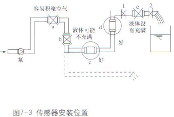 智能電磁流量計傳感器正確安裝位置 智能電磁流量計傳感器安裝方向可水平、垂直或傾斜。因為流量計在工作時,始終要求測量管內(nèi)充滿被測介質(zhì)。水平安裝時,為了確保這一點,必要時傳感器安裝位置的標(biāo)高可以略低于管道的標(biāo)高,如圖7-1,或使傳感器的下游具有足夠的背壓,如圖7-2。