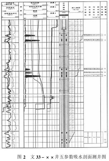 由電磁流量計(jì)組成的吸水剖面測井西路,不受同位素污染及同位素分配不到位的影響,可計(jì)算遇阻層的吸水量,可定量識別出“大孔道地層”和漏失層,從而大大提高了吸水剖面測井資料的解釋精度。