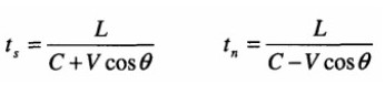 在管道中斜裝一對(duì)超聲波傳感器兩個(gè)傳感器之間的距離L為超聲波傳播聲程。那么,超標(biāo)在兩各傳感器之間的順流和逆流傳播時(shí)間分別為: