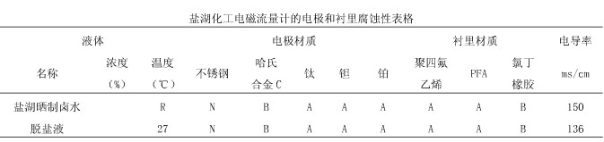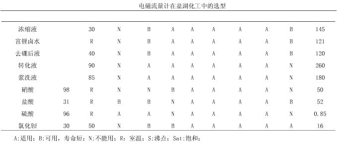 鋰業(yè)公司為鹽湖化工企業(yè),主要生產(chǎn)碳酸鋰硼酸、鉀肥等鹽湖化工產(chǎn)品,原料為曬制鹵水,此鹽湖屬硫酸亞性高鎂鋰比鹽湖,在鹽湖化工生產(chǎn)中產(chǎn)品齊全,也具有代表性。根據(jù)鹽湖化工原料特性,闡述電磁流量計(jì)選型。鹽湖化工原理的特點(diǎn)為電導(dǎo)率高(平均在150ms/cm),強(qiáng)腐蝕,易結(jié)晶。生產(chǎn)過(guò)程中所需要的輔料主要強(qiáng)酸、強(qiáng)堿。生產(chǎn)車間的管道都為防腐塑料材質(zhì),生產(chǎn)環(huán)境溫度最高為90℃,最低為-30℃。鑒于以上工況,在鹽湖化工中電磁流量計(jì)比其他流量計(jì)具有精度高、壽命長(zhǎng)、維護(hù)方便、性價(jià)比高的有點(diǎn),在鹽湖化工中主要在反應(yīng)釜的定比例投放、貿(mào)易計(jì)量、體積計(jì)量等方面。