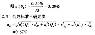 ?? 根據(jù)多次試驗(yàn),內(nèi)徑測(cè)量誤差為±0. 5mm時(shí)引起流量的影響量得到一個(gè)經(jīng)驗(yàn)值,約為0.50%,按均勻分布考慮,則測(cè)量管道內(nèi)徑帶來(lái)的不確定度為:
