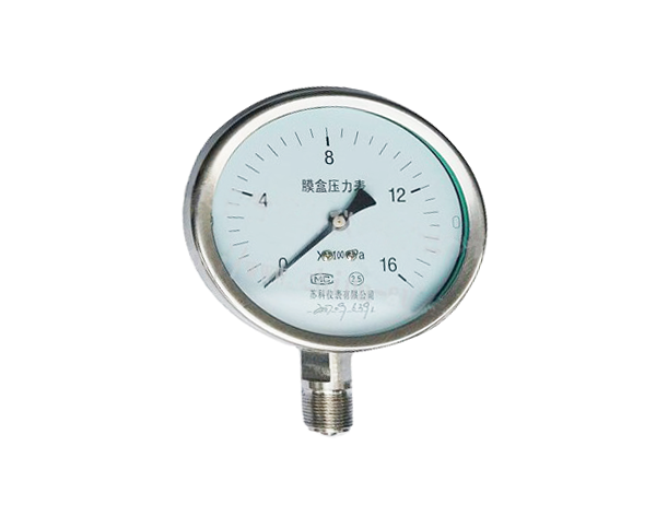YE-100B、150B系列不銹鋼膜盒壓力表可測(cè)量有一定腐蝕性的氣體或液體的微小壓力。儀表的外殼及導(dǎo)壓系統(tǒng)采用1Cr18Ni9不銹鋼材料。